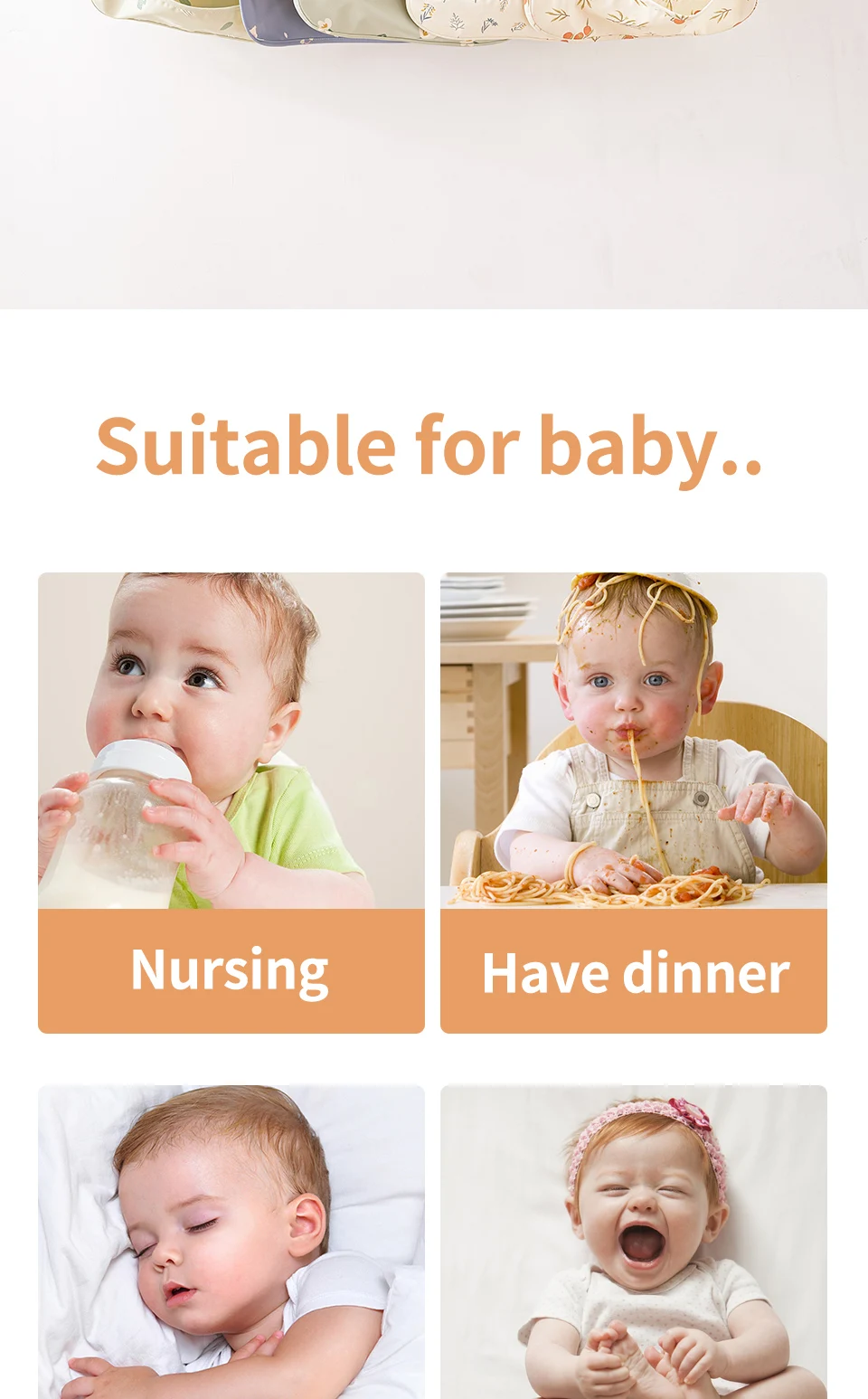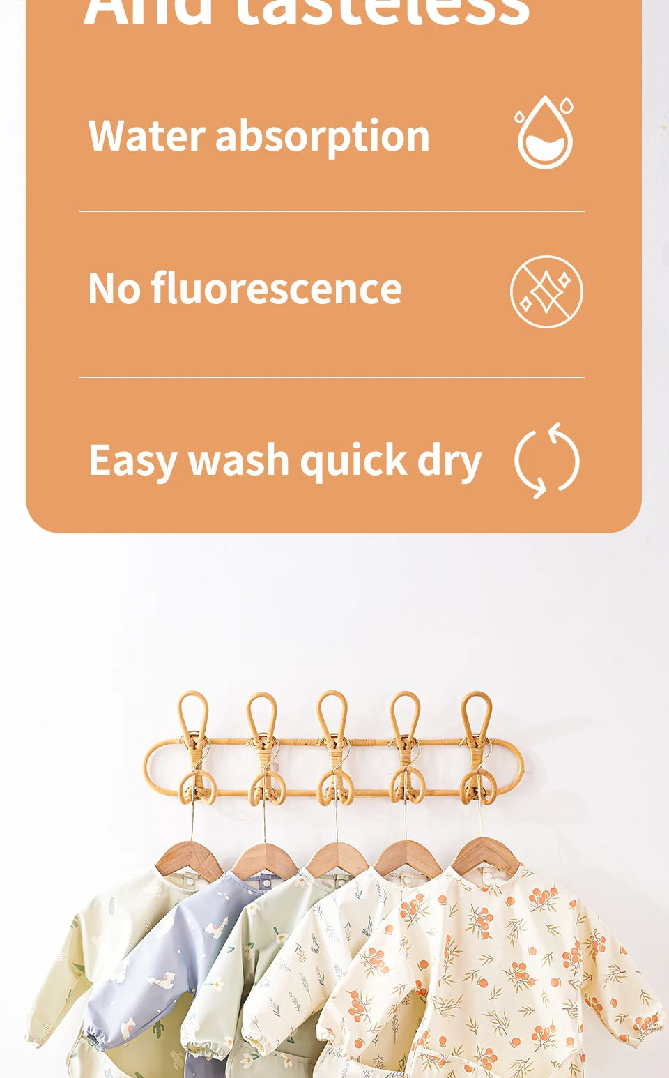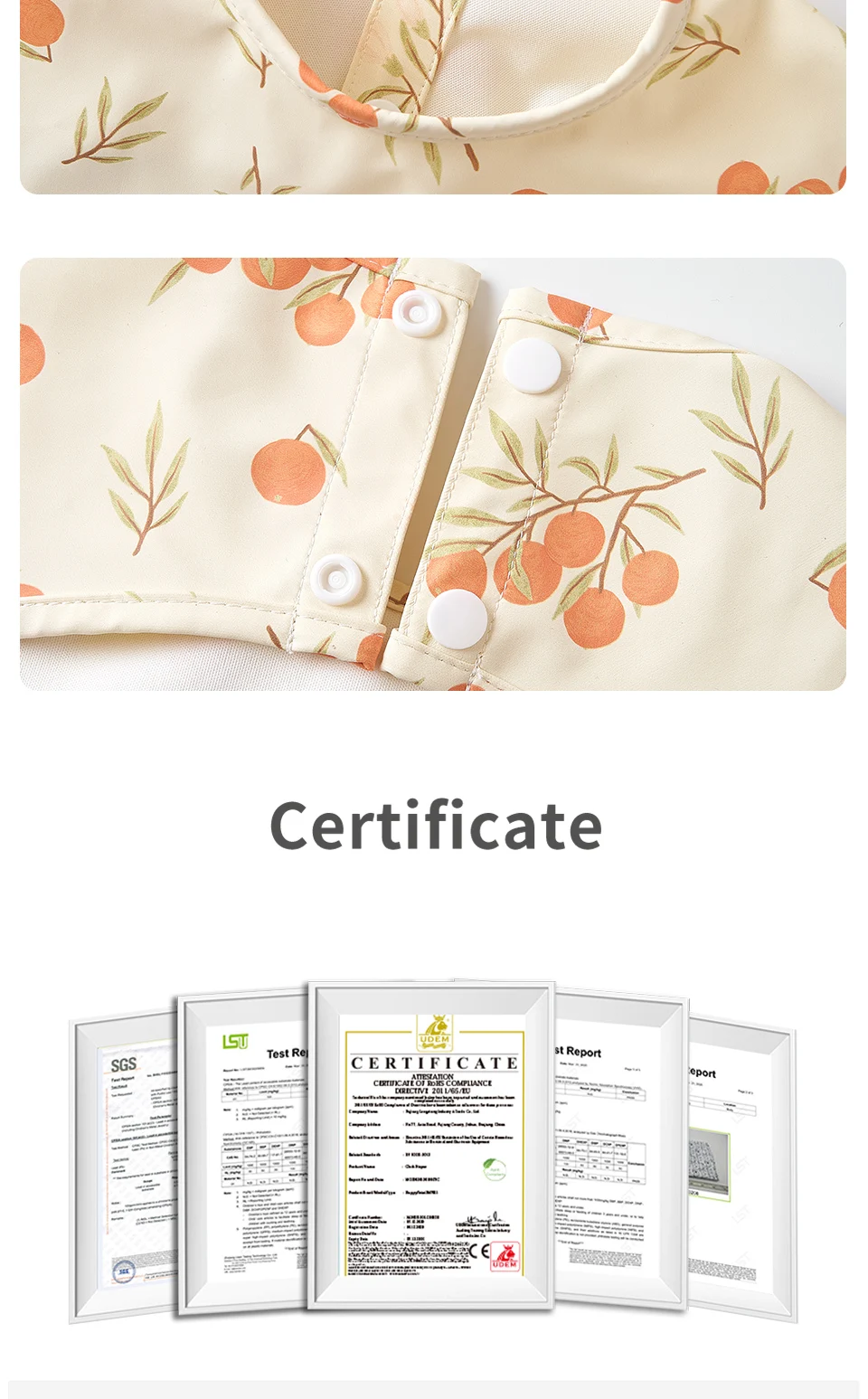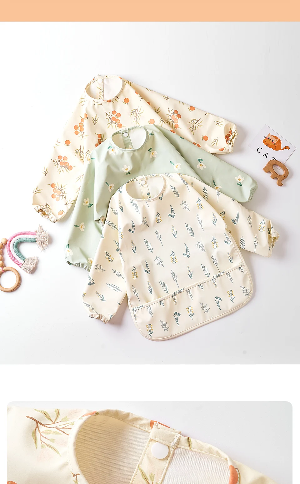 HappyFlute Danish New Style High Qualit PU Fabric Cute Waterproof Long Sleeves Snap Overalls Large Pocket Dirty Free Feeding Bib