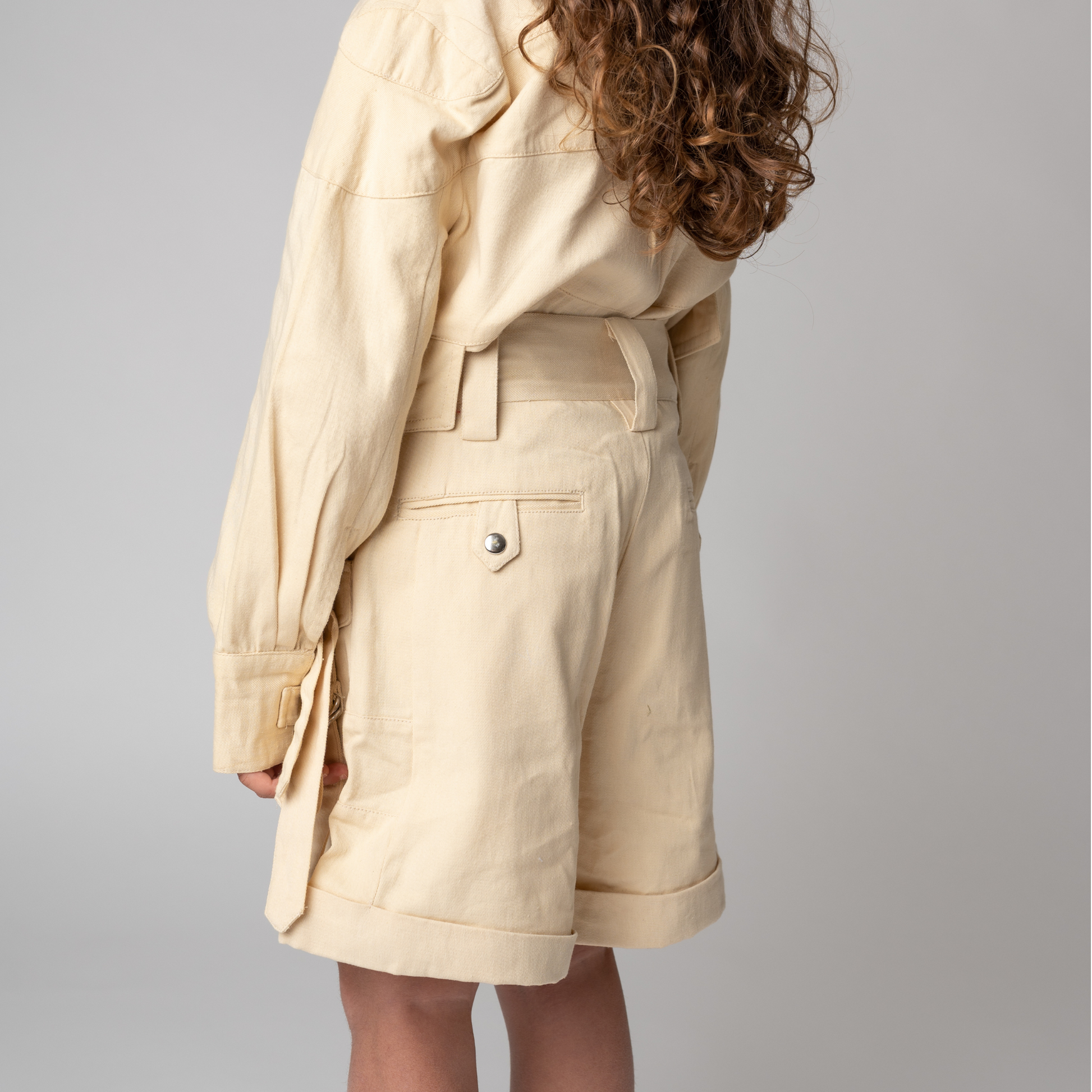Made from organic cotton twill, this style prioritizes style and function with two front pockets, two back pockets, a side zipper and high waist. Meant to be worn with The INITIAL shirt.